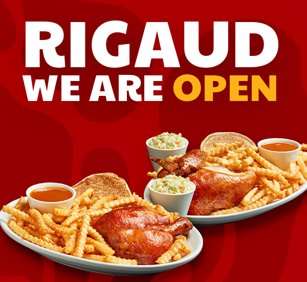Come and enjoy our delicious roast chicken, prepared with care and slow-cooked for 3 hours. Whether you prefer to take out your order at our rotisserie at 420 Chemin J.-René-Gauthier in Rigaud, opt for our convenient drive-thru service, or take advantage of our delivery service, we’ve got you covered.